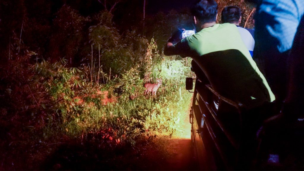 Một trong những hoạt động được nhiều du khách lựa chọn tới đây chính là khám phá cuộc sống của hệ động vật về đêm. Các bạn sẽ được tận mắt nhìn thấy nhiều cách kiếm mồi và sinh hoạt khác nhau của các con vật ở đây chắc chắn sẽ khiến bạn cảm thấy thích thú. Khi tới đây, bạn sẽ có cơ hội tận mắt được nhìn những loài động vật mà không phải nơi đâu cũng có như: Lợn rừng, nai, nhím, bò tót, chồn…