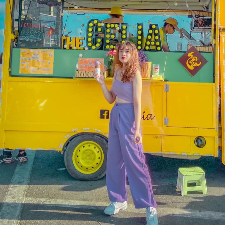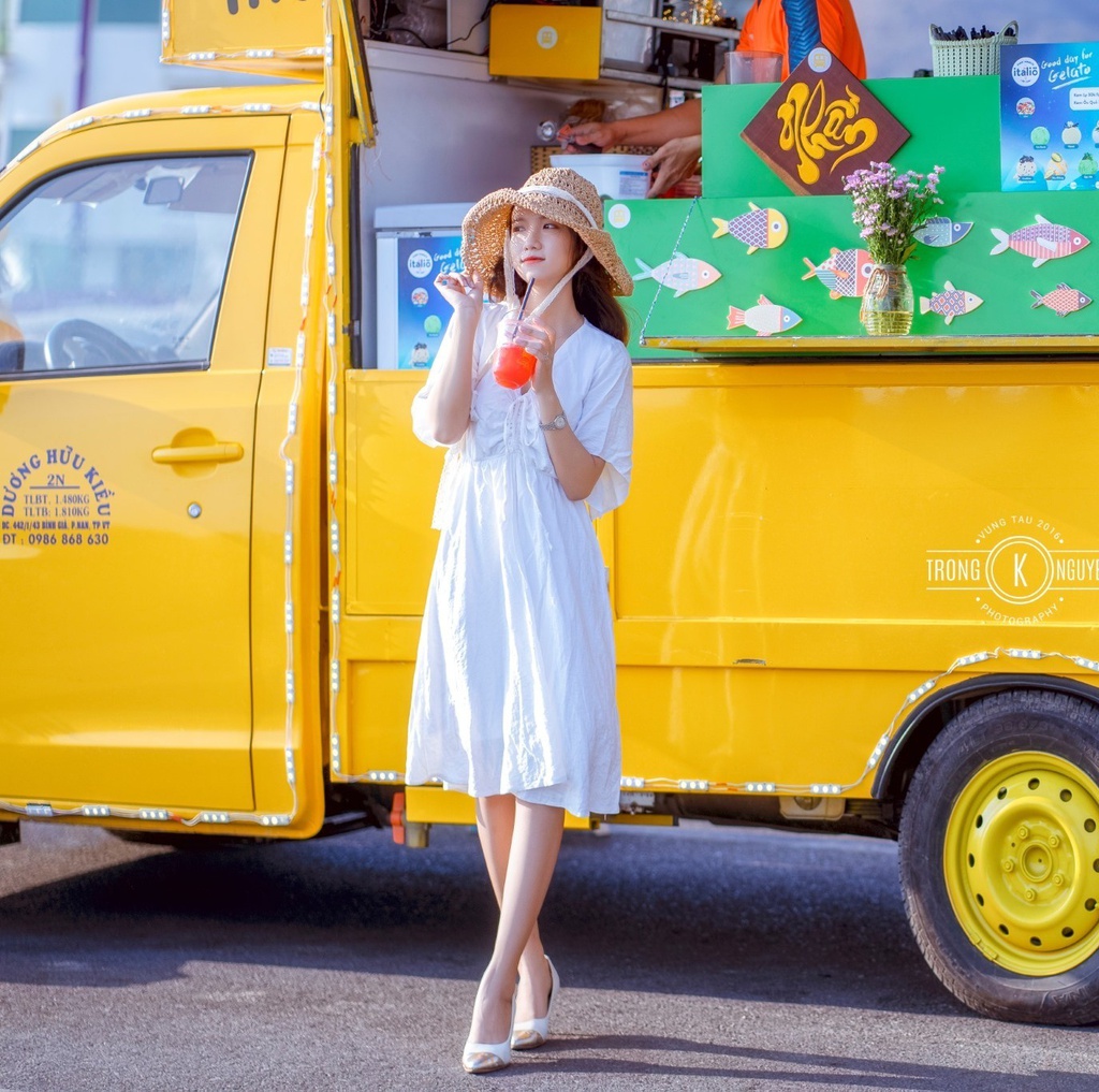 Chiếc xe ghi điểm với giới trẻ bởi mặt tiền sống ảo vàng rực, ăn ảnh. Chỉ cần một bộ trang phục phù hợp, bạn có thể tạo ra bức ảnh check-in hút like. Những ngày chán không gian chật chội, bí bách, nơi đây sẽ là điểm hẹn lý tưởng để bạn ung dung thưởng thức chút đồ uống mát lạnh và tận hưởng hoàng hôn đầy lãng mạn. Ảnh: Trọng Nguyễn, Quynh Junmi.
